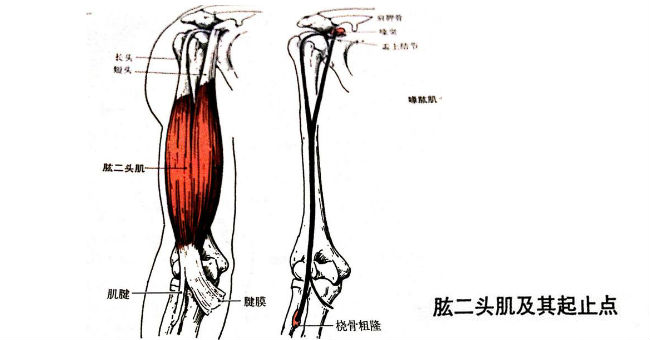 長頭起自肩胛骨盂上結節,短頭起自肩胛骨喙突。