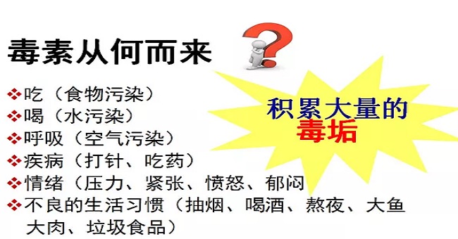 除了食品污染,還有空氣污染,水污染,人一旦長期接觸體內的毒素就會積累。