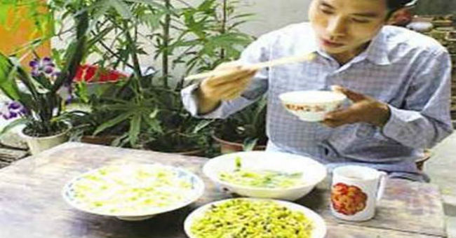 取百合、綠豆各25g,冰糖少量,煮熟爛後,服用時加些牛奶。